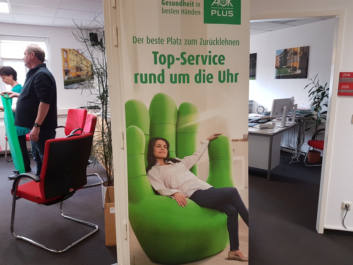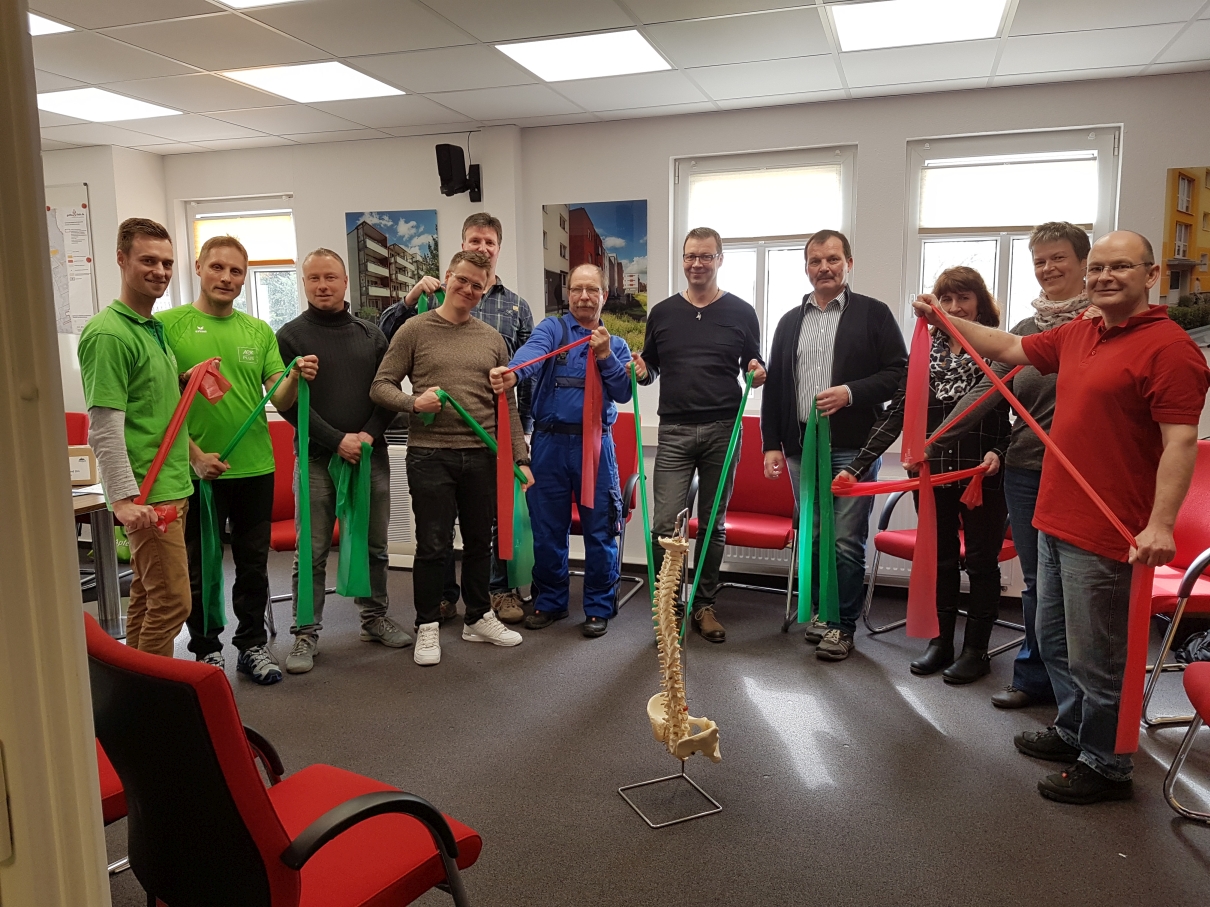 Gesundheit steht im Vordergrund – Da die wbg Wert auf das Wohlbefinden ihrer Mitarbeiter legt, organisierte der Vorstand zusammen mit der AOK den ersten AOK-Gesundheitstag in den Räumen der wbg. Alle Mitarbeiter im Haus nahmen das Angebot dankend an. Sie bekamen die Möglichkeit, an einer Schnupper-Rückenschule teilzunehmen und eine Halswirbelsäulenmessung durchzuführen. Außerdem informierte ein Mitarbeiter der AOK über die Leistungen der Krankenkasse. Neben der aktiven Förderung der eigenen Gesundheit kam auch der Spaß nicht zu kurz: Alle Beteiligten zeigten sich sehr zufrieden mit der Veranstaltung.
