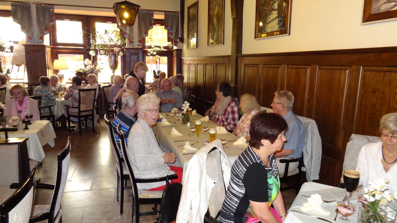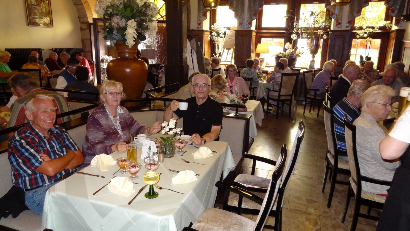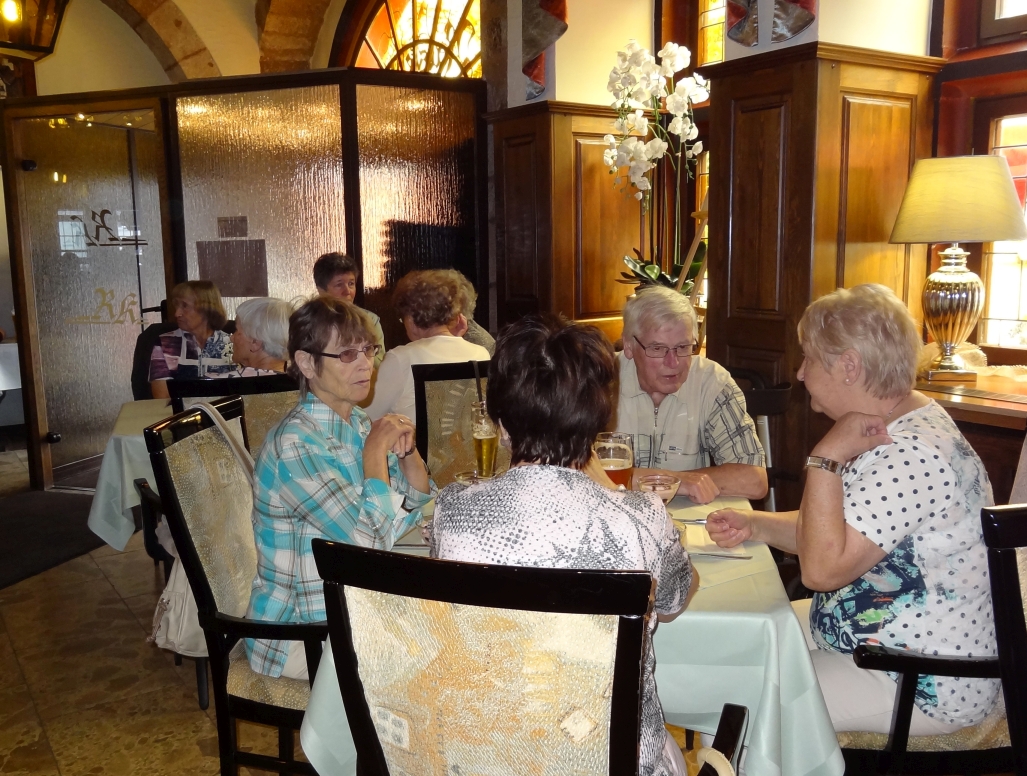 Anschließend stärkten wir uns bei dem gemeinsamen Mittagessen mit Hackbraten, Pilzen, Mischgemüse und Kartoffeln. Eine leckere Fruchtquarkspeise versüßte das Mittagessen. Nun erkundeten wir die Fachwerkstadt auf eigene Faust. Schloss Wilhelmsburg ragt über die malerische Altstadt und der Terrassengarten der Burg begeisterte genau wie der Altstadtkern mit verträumten Plätzen und Gassen sowie der Stadtkirche St. Georg. Die Zeit verging wie im Flug und die Reise ging weiter zur Viba Nougat-Welt. Hier wurden wir mit einem Kaffeegedeck und der original Viba Nougattorte verwöhnt. Während der Heimfahrt plauderten wir über die schönen Erlebnisse dieser Reise.