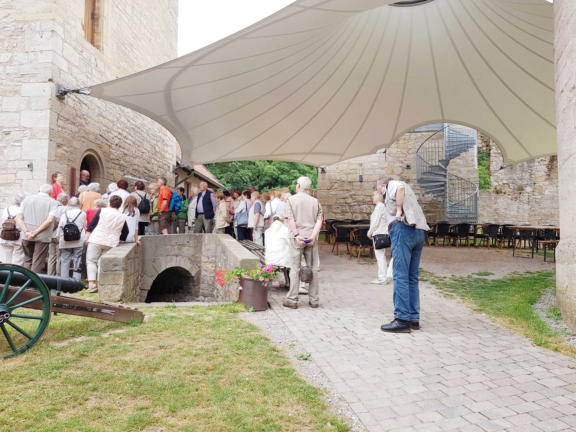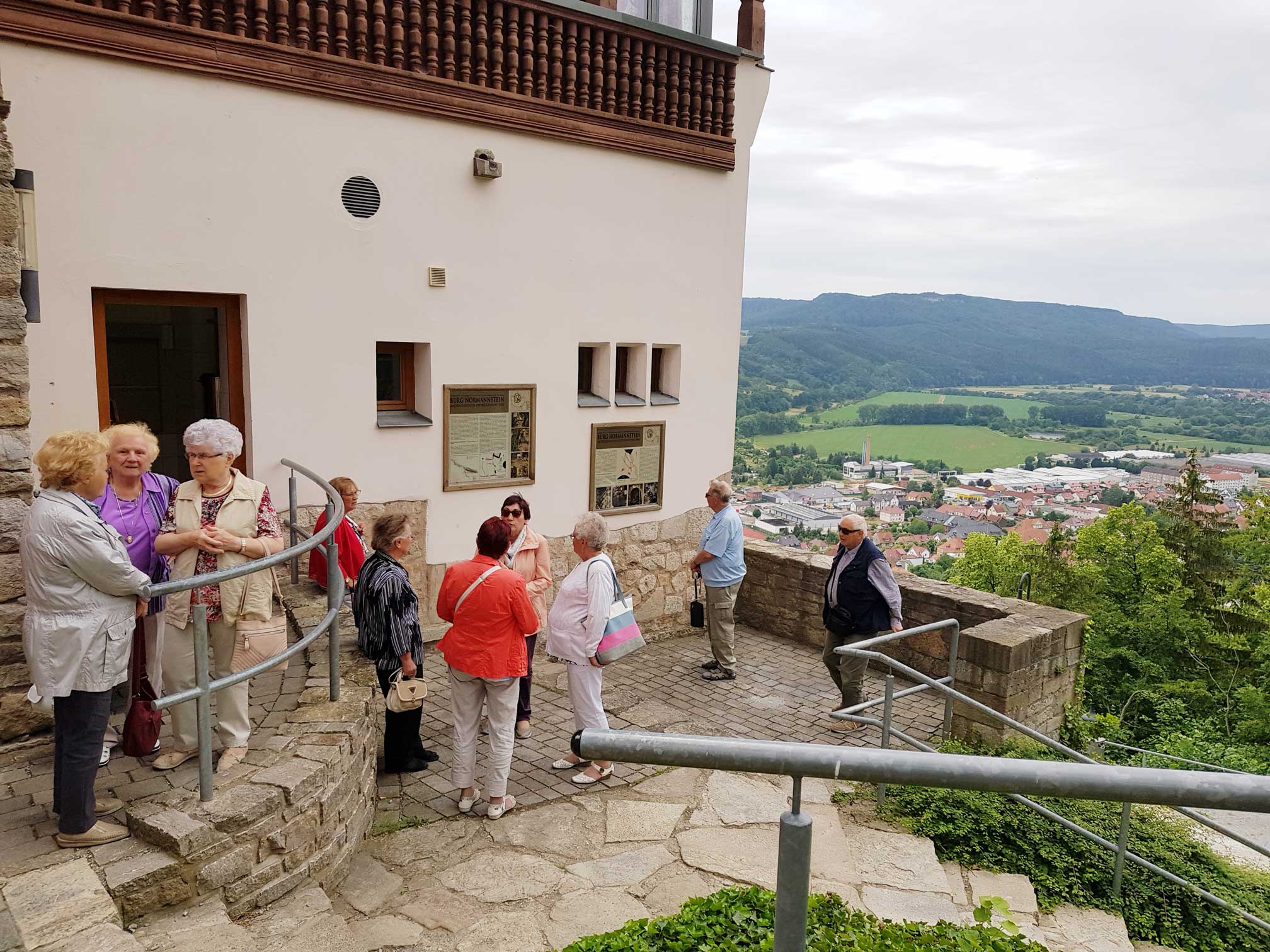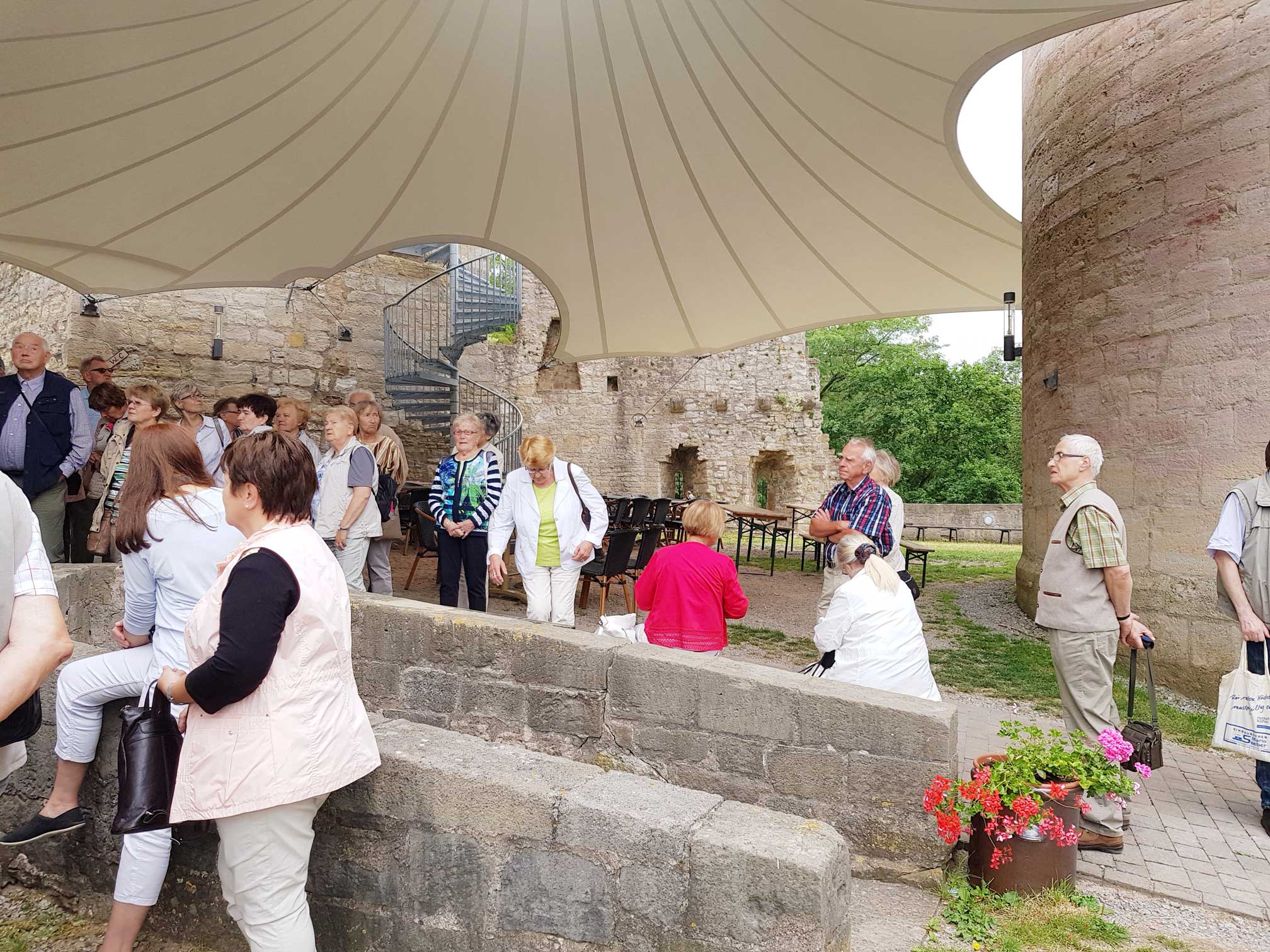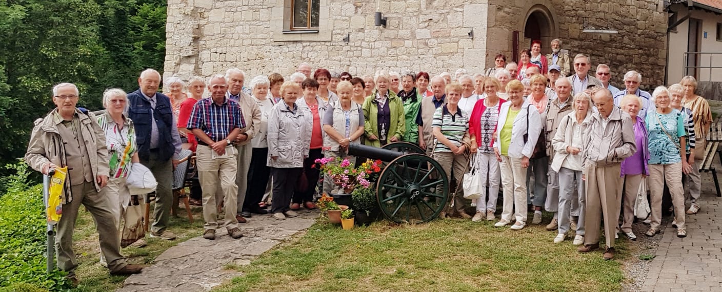 Einen sehr unterhaltsamen Tag hatten unsere 60 Teilnehmer zur Busfahrt nach Treffurt am 12. Juni. Auf der Burg angekommen konnten sie zunächst im Restaurant „Burg Normannstein“ bei einem gemeinsamen Mittagessen die Rinderroulade mit Rotkohl und Klößen genießen. Während der anschließenden Führung durch die Burg wurden sie dann in die Vergangenheit entführt und erfuhren mehr zur Geschichte der Festung. Nach der Führung erfreuten sie sich in gemütlicher Runde an Kaffee und selbstgebackenem Kuchen.