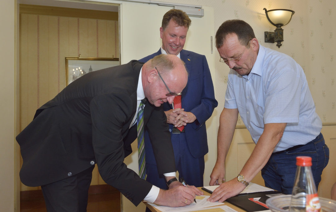 Vorstand Steffen Priebe (li.) und Heike Backhaus (2.v.r.) gratulieren dem neuen Aufsichtsrat: v.l.: Jens Wettstein, Norbert Kaschek, Horst Gerisch, Jutta Markert, Jürgen Schmidt