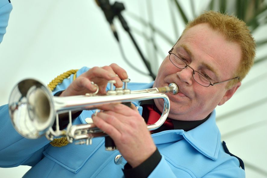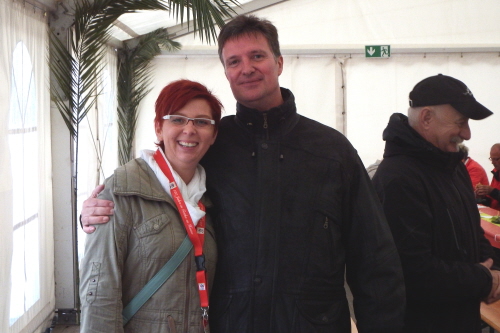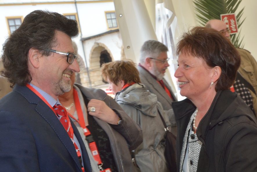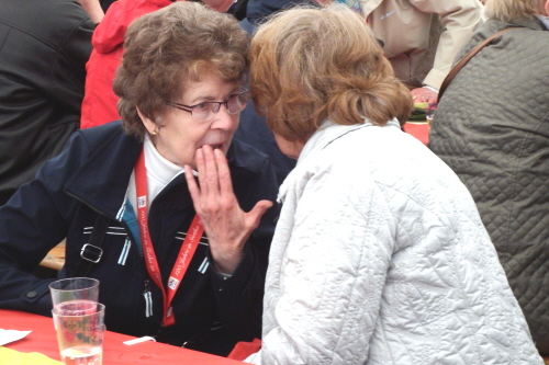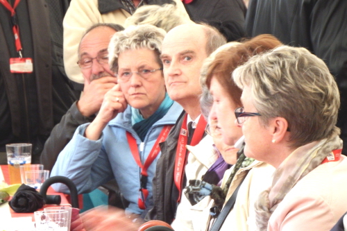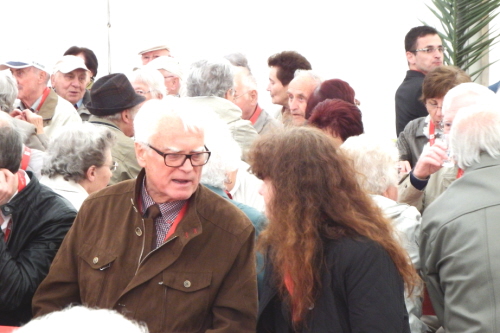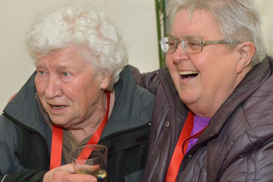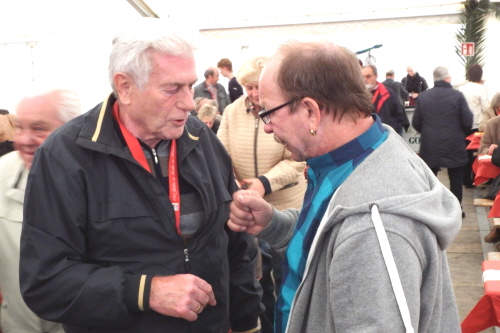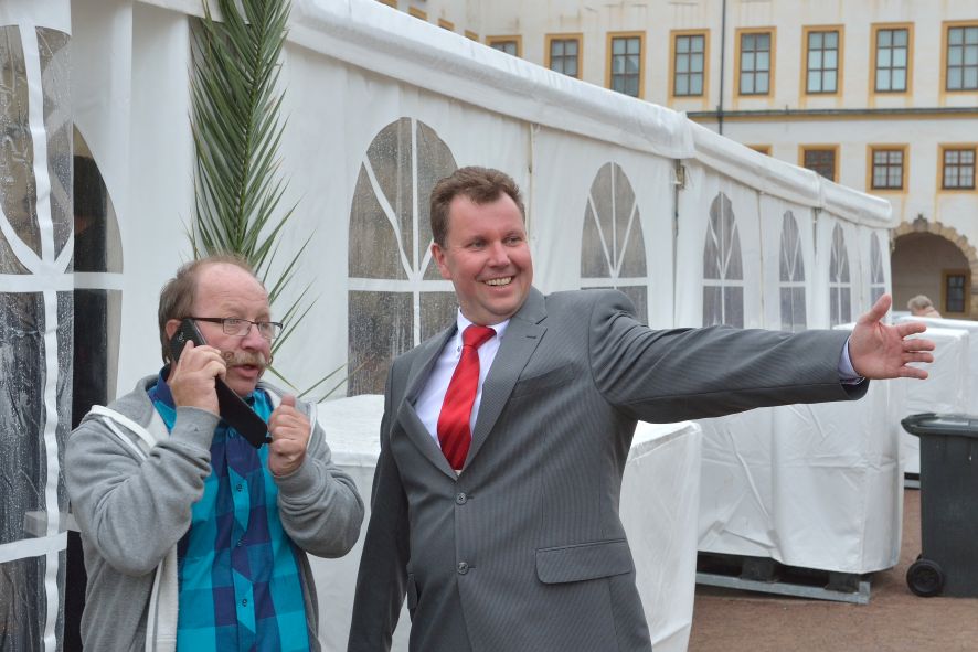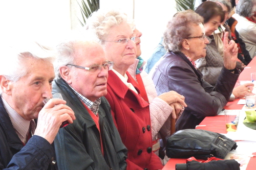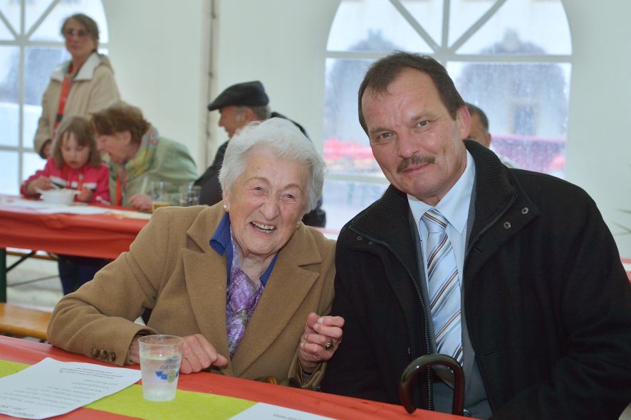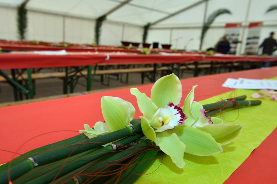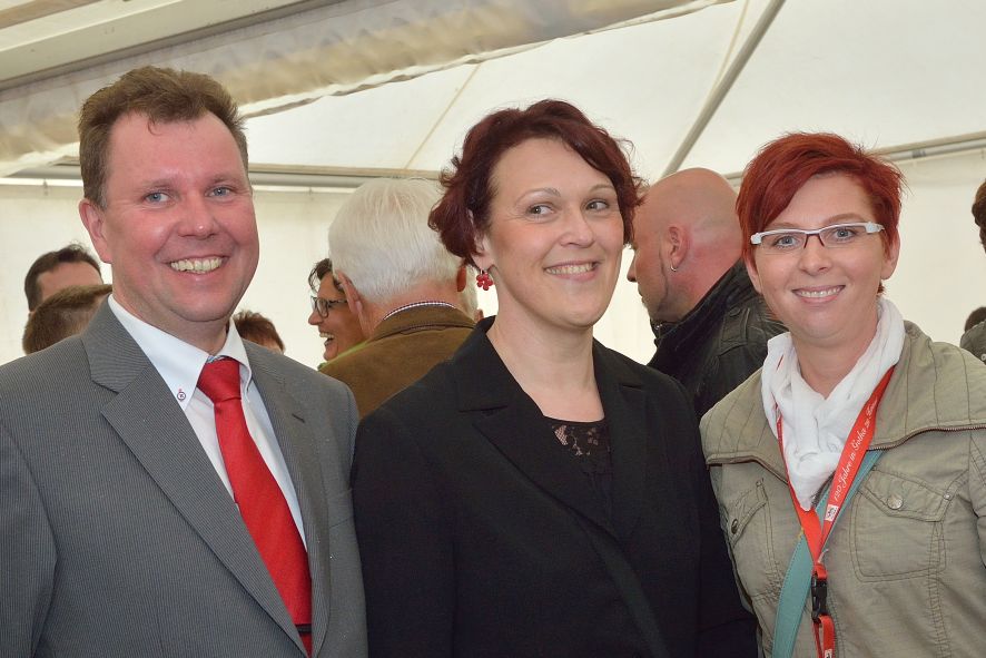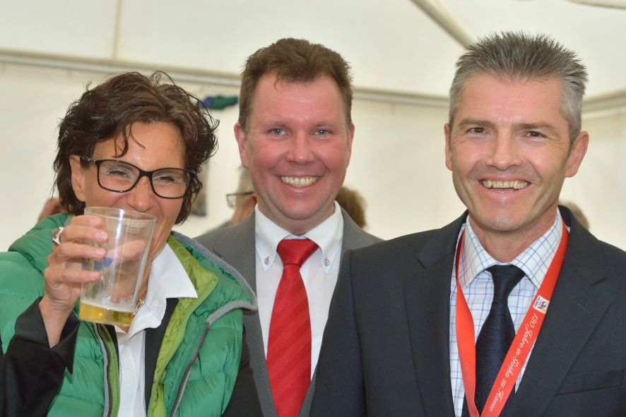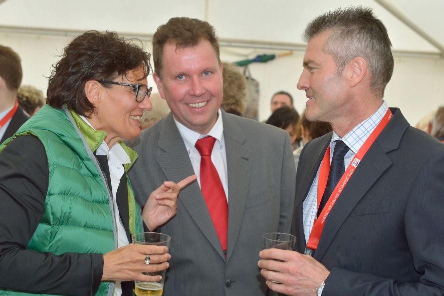 Viele Mitglieder nutzten den Nachmittag für intensive Gespräche und Erinnerungen – auf zehn Fahnen hatte die wbg ihre Geschichte in Bildern zusammengetragen. Die beiden Gothschen Originale Hänser und Schluder sorgten für einige Lacher im Festzelt – bei Atemlos, gespielt vom Fanfaren-und Showorchester Gotha, riss es schließlich die Mitglieder von den Plätzen und ließ viele lautstark mitsingen.
