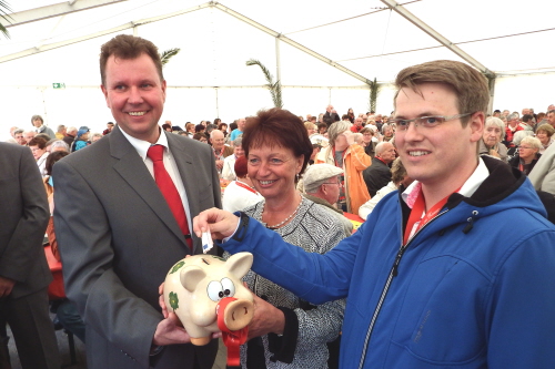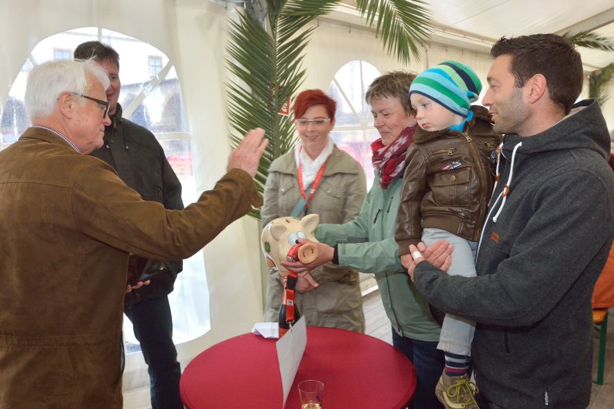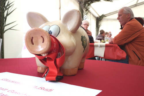 Auch wenn Petrus nicht ganz mitspielte, ließen es sich die Mitglieder der wbg nebst Partnern und Vorständen heute nicht nehmen, ausgelassen im Hof des Schlosses Friedenstein ihren 120.Geburtstag zu feiern. Mit der Aktion „Spenden statt Geschenke“ wurde Glücksschwein Rudi schon in den vergangenen Wochen fleißig von den Mitgliedern und Partnern gefüttert, so dass Steffen Priebe als kaufmännischer Vorstand der wbg heute einen stolze Spendensumme in Höhe von über 11.000 Euro verkünden konnte. Das Geld soll in einen Spielplatz in der Enckestraße investiert werden.