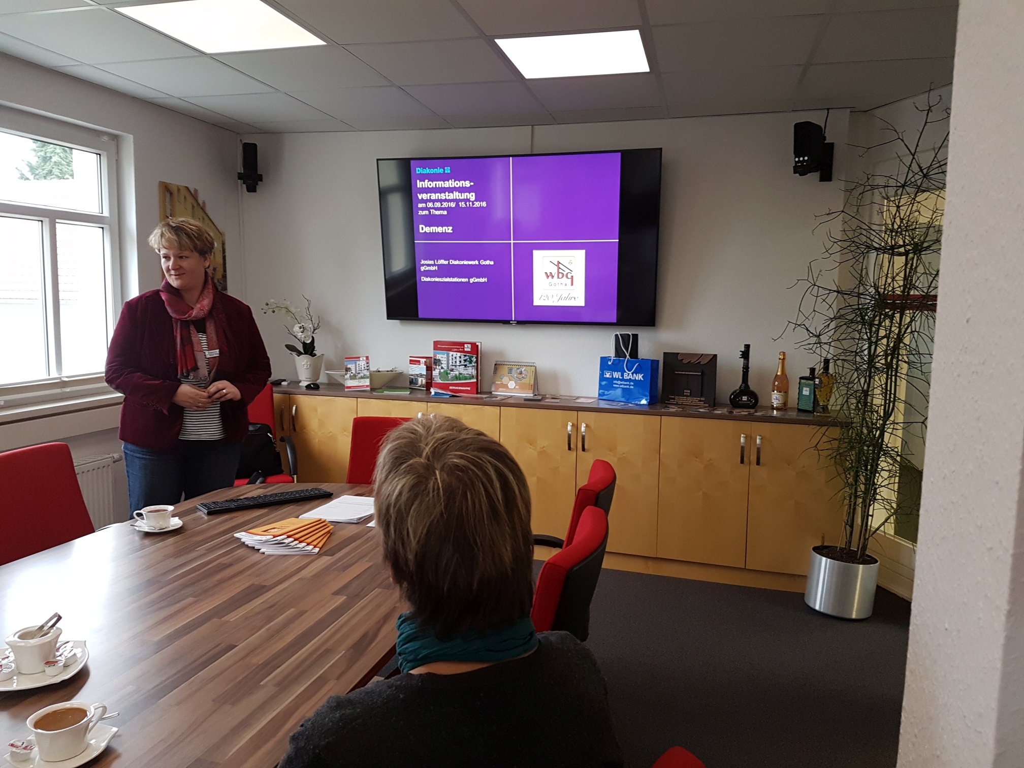 Bei einer Mitarbeiterschulung am 15. November informierte Nadine Gröger von der Diakonie Gotha das Team der wbg zum Umgang mit demenzkranken Menschen. Ziel sollte es sein, eine Sensibilisierung für das Thema zu schaffen, um bei Bedarf schnell handeln zu können. So lernten die Mitarbeiter der Verwaltung zum Beispiel, welche Formen der Demenz existieren, wie man sie erkennt und wie einfühlsam mit Betroffenen umgegangen werden kann.