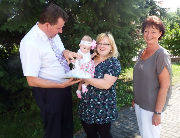 Zwei kleine Prinzessinnen durfte die wbg kürzlich herzlich willkommen heißen und ihnen ihre Wilkommensgeschenke überreichen. Die kleine Maria aus der Stölzelstraße ist schon vier Monate Mamas größter Stolz und war ganz neugierig, was sich wohl in dem laut raschelnden Papier verbirgt.