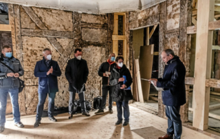 Im Rahmen der dritten Aufsichtsratssitzung 2021 besichtigten Aufsichtsrat und Vorstand der Wohnungsbaugenossenschaft Gotha e.G. am 19. August die Baustelle im Amtshaus in der Augustinerstraße 15. Unter der fachkundigen Führung des